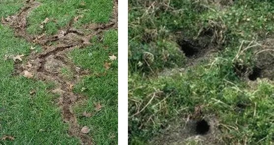 The best way to tell if you have voles is to look at the trails left behind in your yard. Voles live underground and burrow in large networks that will leave trails in the grass. While gophers and moles leave raised ridges or mounds on the surface of the ground, vole trails leave rivets or cracks in the ground because they are closer to the surface. Voles also leave behind small holes, about the size of a golf ball, instead of large holes like gophers and moles make.